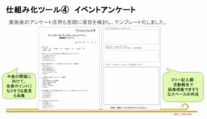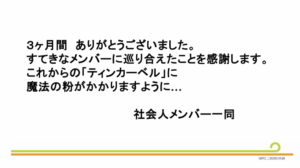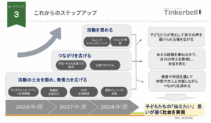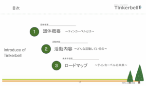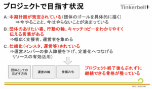 プロジェクトの成果としては多くはないですが、この成果はきっとこれからのティンカーベルの団体の骨格になってくれると思います。
