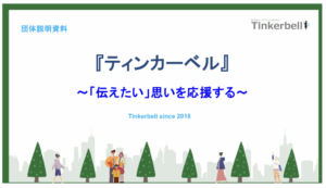ティンカーベルは「子どもたち・若い世代がキラキラ輝いて日々過ごせるように」そのための課題解決に多面的な活動で取り組む団体です。課題について深く学びあうディスカッションイベントや、政策提言・事業立案のプラットフォームとしての活動を通し、取り組みに意欲を持つ人々が集うコミュニティを広げています。運営7年目を迎えましたが、活動の意義について大人世代への理解浸透がうまく進まず、ゆえに運営資金調達に広がりを欠き、活動を望む子ども・若者へ十分にその機会が届けられない現状があるほか、法人化に伴う理事(定着)の募集にも課題があります。