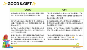 メンバーの中からみんなにGift(Good&Thanksの言葉)をあげたいという意見も出て、振り返り&Gift会を最終報告の1ヶ月後に開催することになったり、継続して団体を手伝ってくれるメンバーもでてきました。団体からはまたこのメンバーで集まってその後の成果を報告したいと希望もあり、半年後に団体からの成果報告会の開催も決まりました。