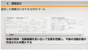 それぞれの課題解決に向けて最終報告のゴールや成果物もしっかり議論して設定できました。定例MTGの時間の使い方も全体議論とチーム議論をうまくミックスさせ、プロジェクト全体の進捗を踏まえつつ、チームでのアウトプットの質と量を高めていく動きになってきています。